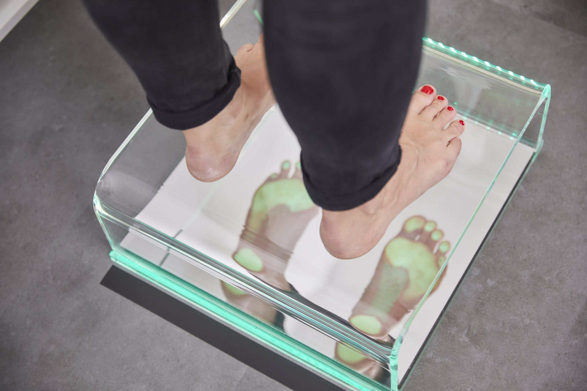 Jeder Fuß wird 3dimensional gescannt und analysiert. Danach werden die Einlagen individuell am PC mit der Paro 360 Grad Software modelliert und mit der hauseigenen CNC Fräse computergefräst.